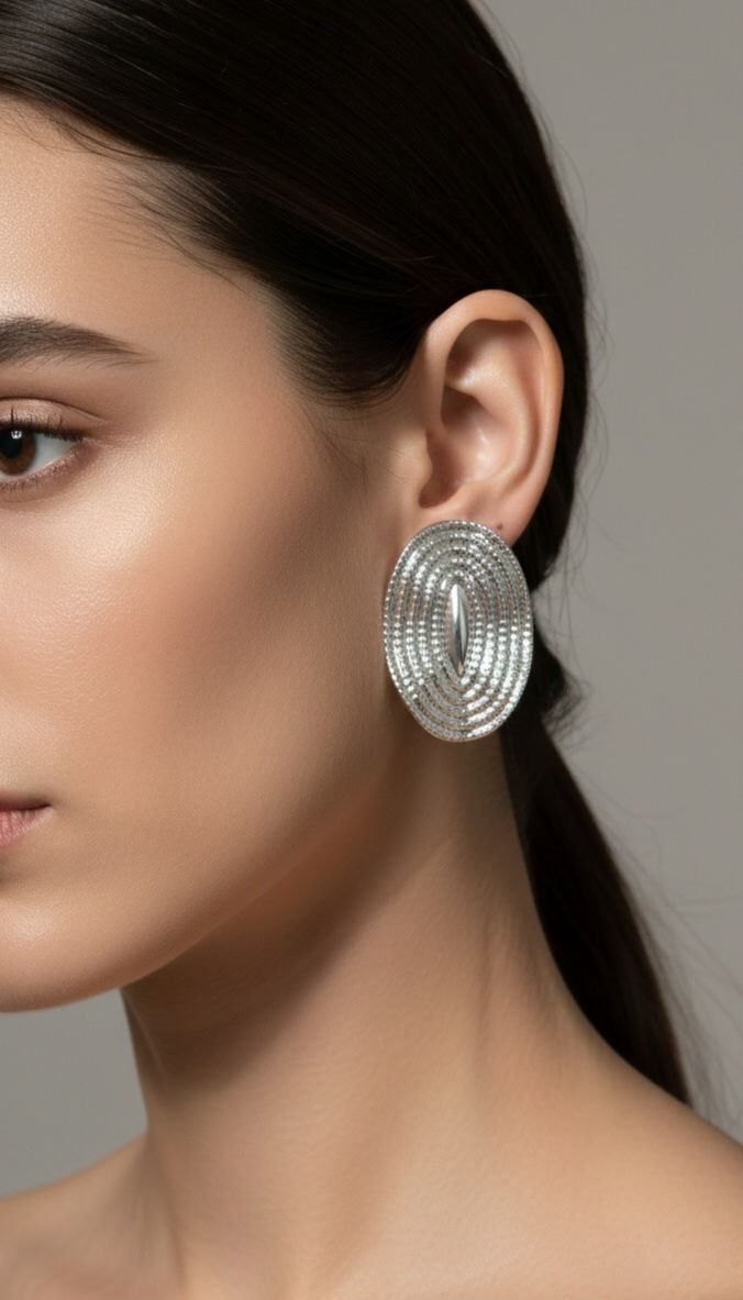 Brinco Organico Oval com Pontinhos Ródio Branco